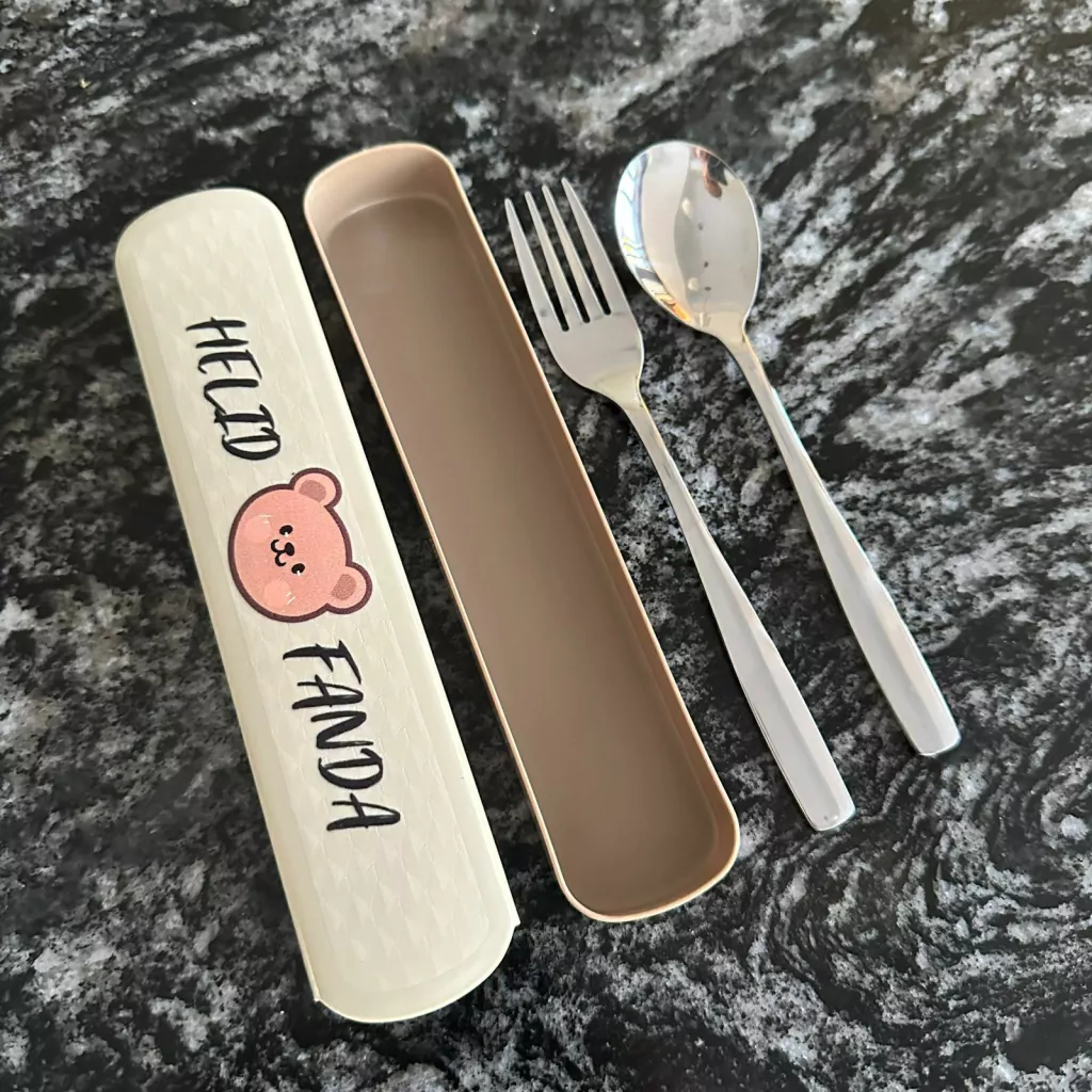 Hermoso set de tenedor y cuchara para llevar en la mochi de los pequeños de la casa
